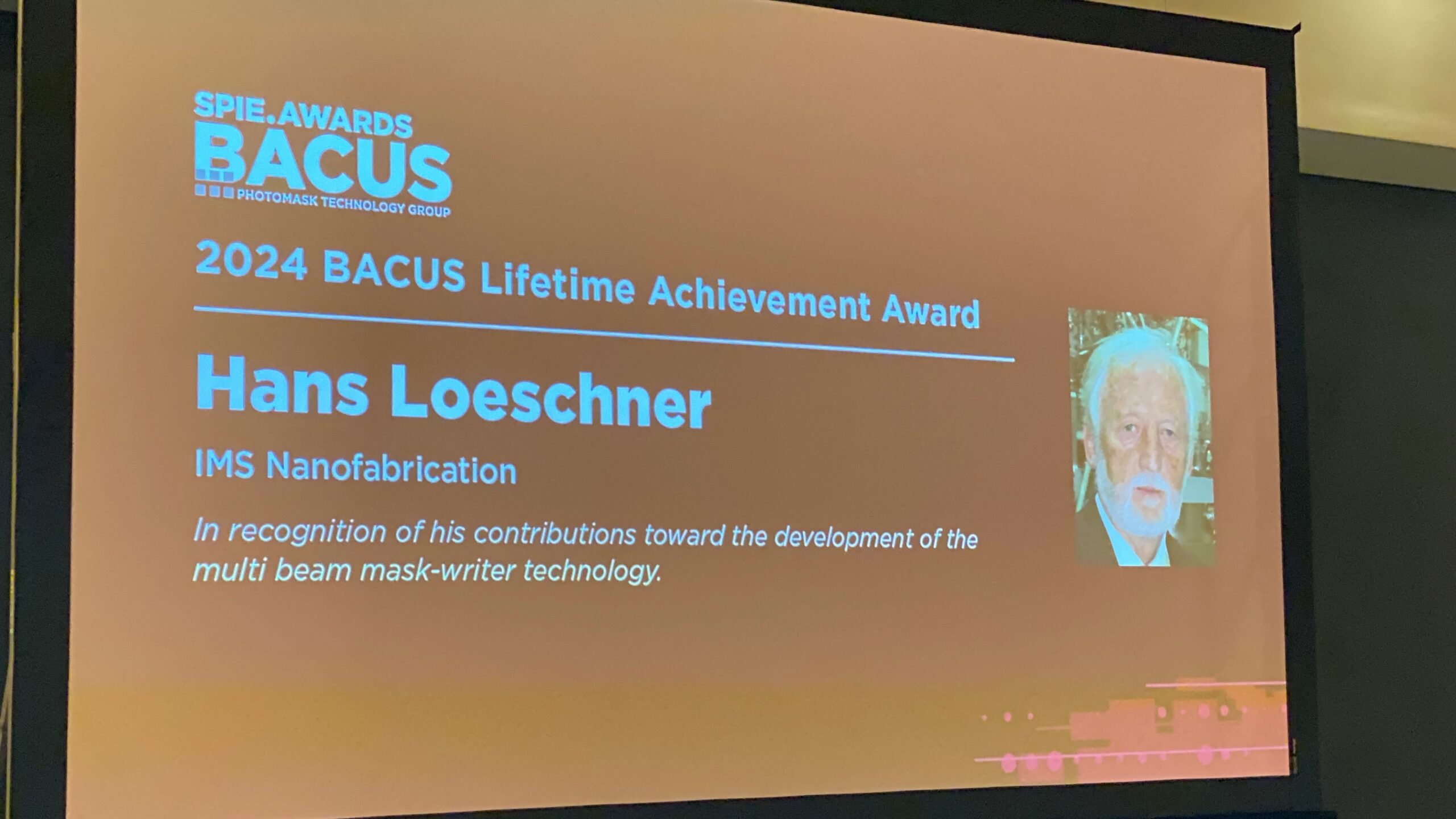 Es freut uns, bekannt geben zu dürfen, dass Hans Loeschner, unser Mitbegründer und Senior Advisor, für seinen Beitrag zur Entwicklung der IMS-Technologie für Elektronen-Multistrahl-Maskenschreiber (MBMW) mit dem BACUS 2024 Lifetime Achievement Award ausgezeichnet worden ist. Die Auszeichnung wurde ihm am 2. Oktober 2024 auf der SPIE Photomask Technology and Extreme Ultraviolet Lithography Konferenz in Monterey, Kalifornien verliehen.