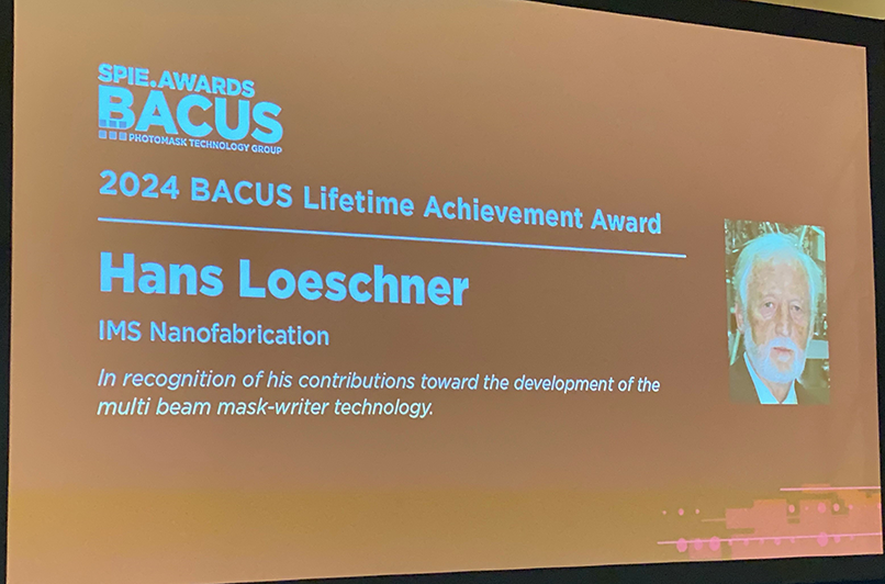 We are pleased to announce that IMS Co-Founder and Senior Advisor Hans Loeschner has been honored with the BACUS 2024 Lifetime Achievement Award in recognition of his contributions toward the development of the IMS electron multi-beam mask-writer (MBMW) technology. He received the prize at the SPIE Photomask Technology and Extreme Ultraviolet Lithography conference in Monterey, California, on 2 October 2024.